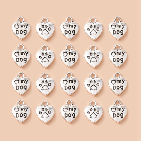 จี้สแตนเลส201พิมพ์รูปอุ้งเท้าสุนัขหัวใจ5ชิ้นของ pandahall