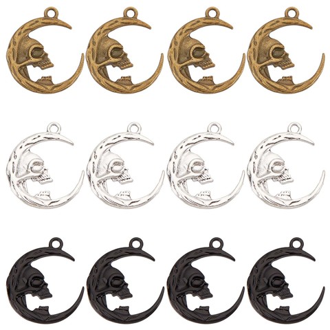 เครื่องประดับจี้รูปหัวกะโหลกพระจันทร์ทำจากโลหะของ Pandahall เครื่องประดับคลาสสิกงานประดิษฐ์5สีขนาด23*27มม. สร้อยคอเครื่องประดับต่างหู